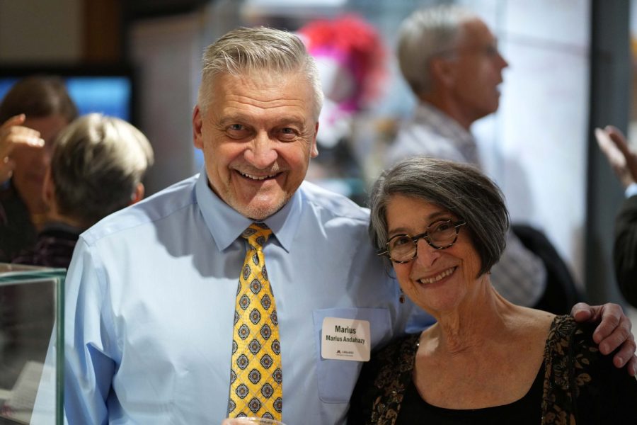 Marius Andaházy, artistic director at Andaházy Ballet Company and son of Anna and Lóránt Andaházy, poses for a picture with Judith Brin-Ingber, a choreographer, dancer, and dance scholar, at the “Dance Roots” opening event, on Oct. 27, 2023. (Photo/Luke Logan)